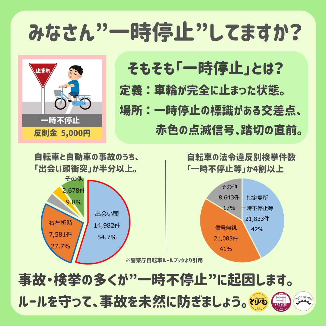 どうでしょう?皆さん自転車に乗っている時に”一時停止”意識してますでしょうか?