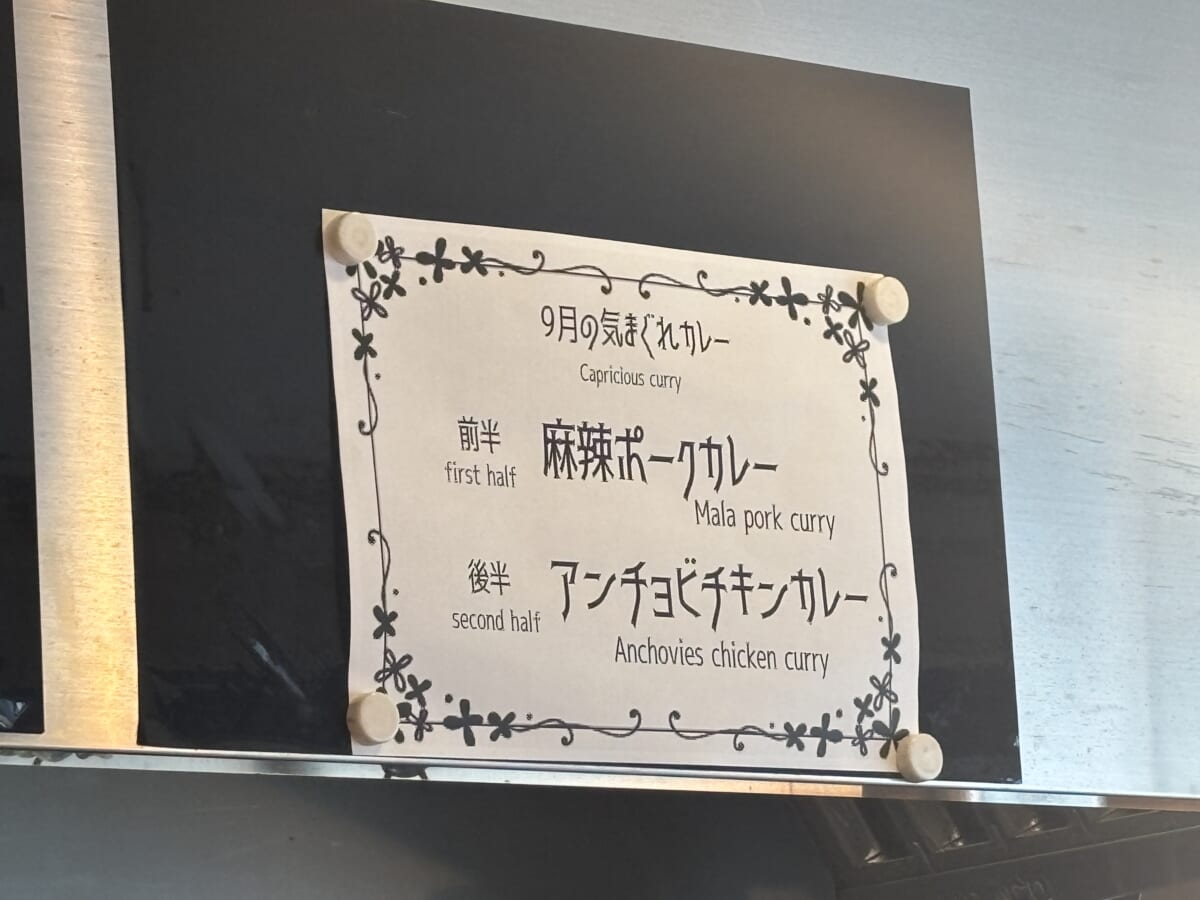 Instagramの方で気まぐれカレーの告知がされていますが、麻辣ポークカレーも