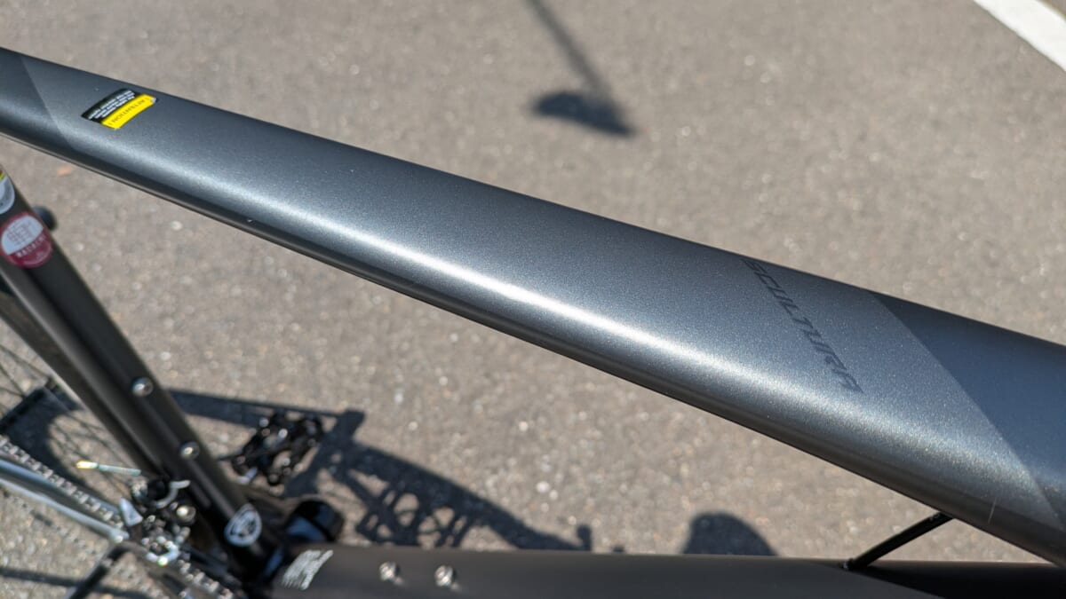 ☝細部の写真を撮れてませんが、トリプルバテッド・ハイドロフォーミング製法によるこのフレームは、ブレーキやシフトワイヤーがフレーム内部を通る仕様。これが見た目のスッキリさと空力抵抗の軽減に一役買ってくれてます。そして軽い。すごいぞトリプルバテッド・ハイドロフォーミング製法(口に出して読みたい製法ですね)