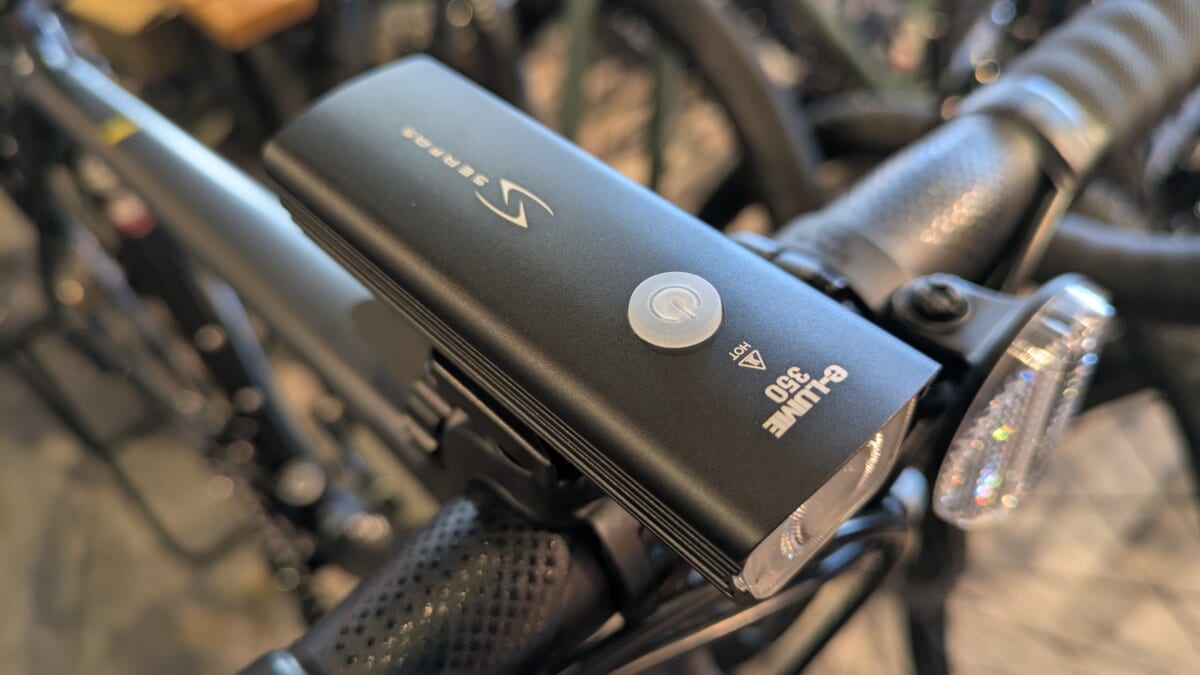 ☝フロントのライトはSERFASのUSL plus-350。日常使いならコチラで十分なライト。どんどん走る距離が増え、物足りなく感じてくるようなら上位モデルもオススメしたいです。
