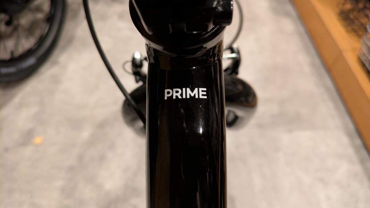 トップチューブに「PRIME」と一言。ちなみに、上位機種のストンパーエースとの主な違いについて、