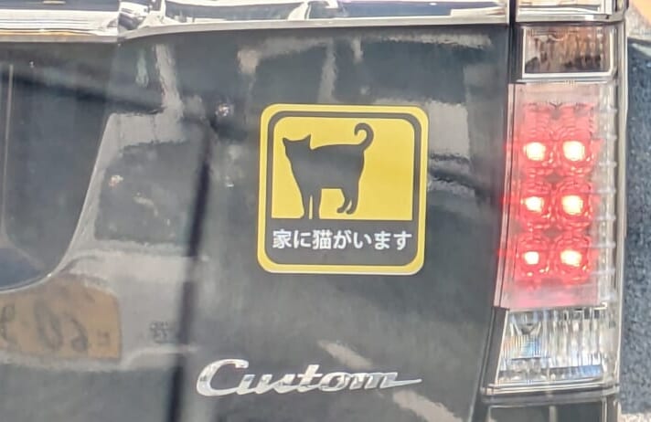 この間クルマを運転していたら、信号待ちで前のクルマのバックドアに、「BABY IN CAR」と同様なノリで