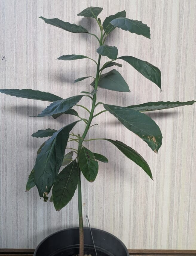スタッフ拙宅の種から育てて(春から夏は玄関先で半放置して)1年半のアボカドです。