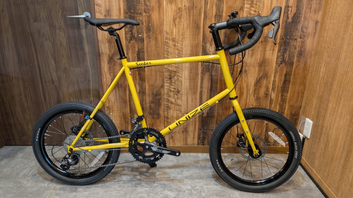 太めタイヤのミニベロ、オフロード・ツーリング界隈でも見かけることの多くなった佇まいです。