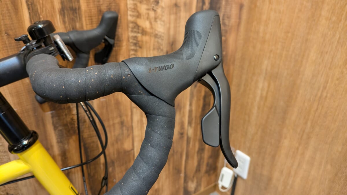 特徴の一つ、ドロップハンドル。変速レバーがブレーキレバーの近くにあります↓
