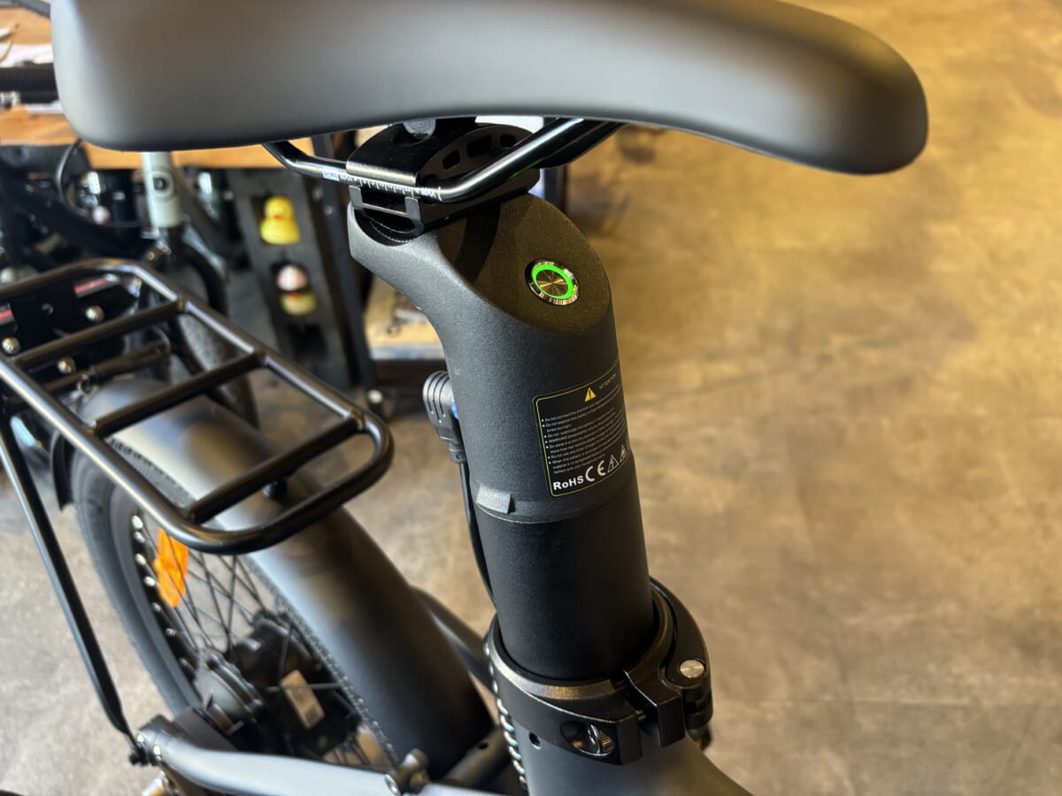 空気を入れるバルブ形式が、日本で一般的な「英式」ではなく「米式」な点。また、室内充電時にサドルごと抜いて充電**を行わなければならない点など、国内メーカーに慣れたお客様は注意が必要です。