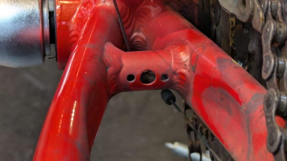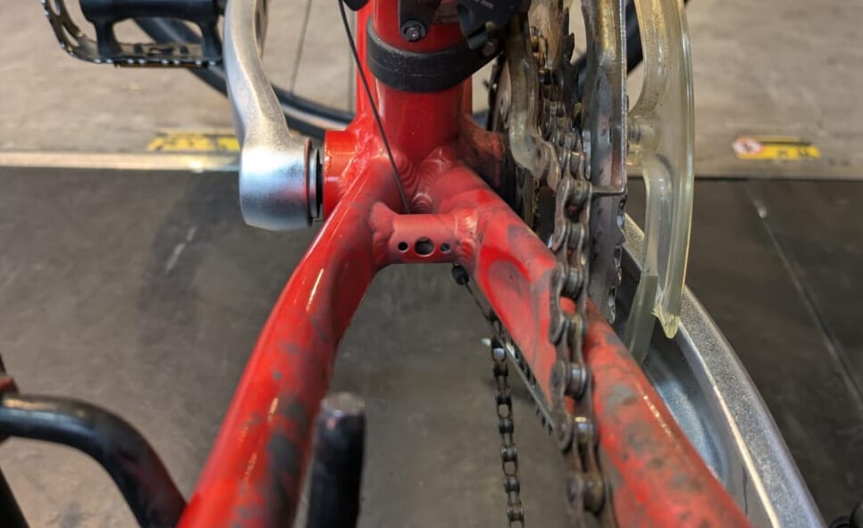 この間、修理をさせて頂いていたスポーツバイク。ふと視線をやると思いもよらない場所に
