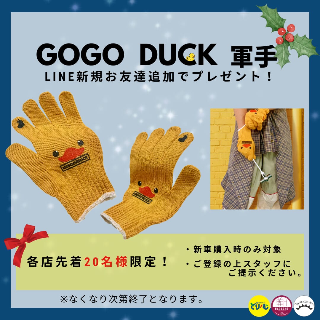 新車購入時にLINE新規登録で GO!GO! DUCK 軍手プレゼント!