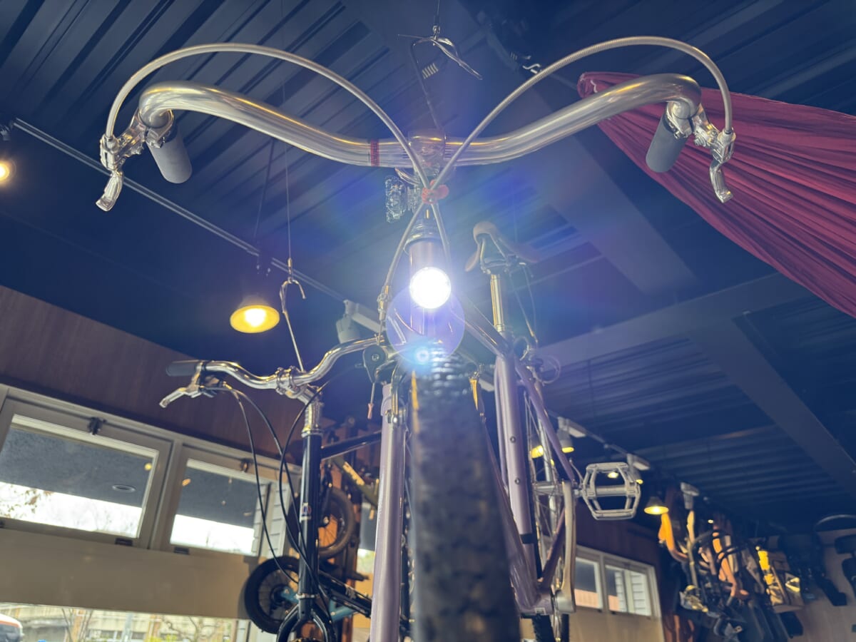 この手のボディが小さいライトは明るさはそんなに明るくないですが、該当の多い街中では必要十分ではないでしょうか?🤔