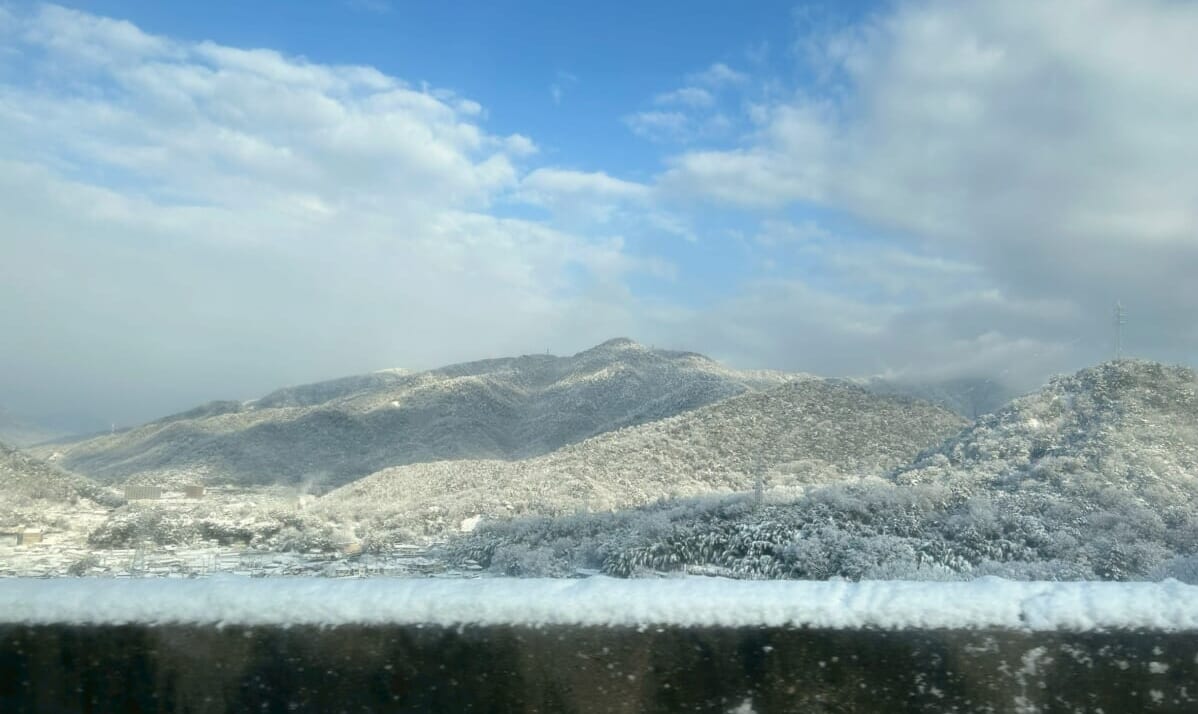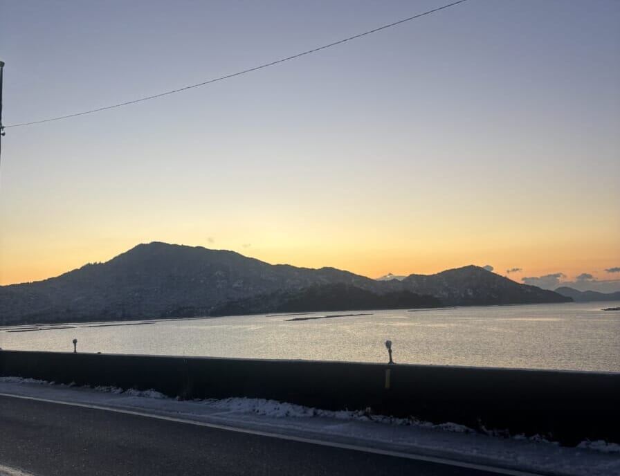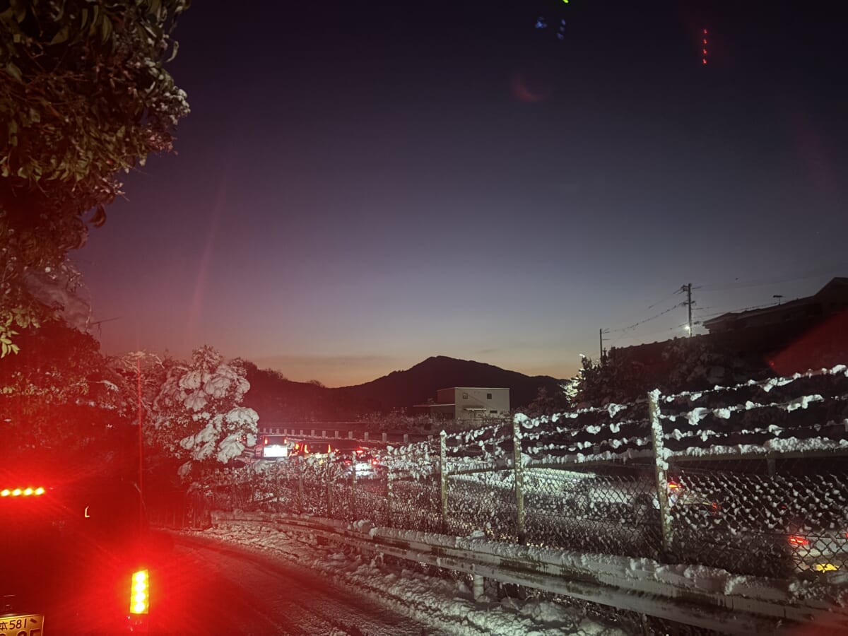 夜明けの景色はまさに絶景!帰路への希望が見えてきました! 高速道路に戻ると、そこには一面の銀世界が!👀