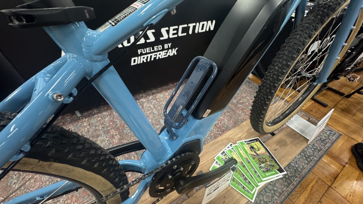 お次は電動自転車ですが、なにやら変わった形をしてらっしゃる…