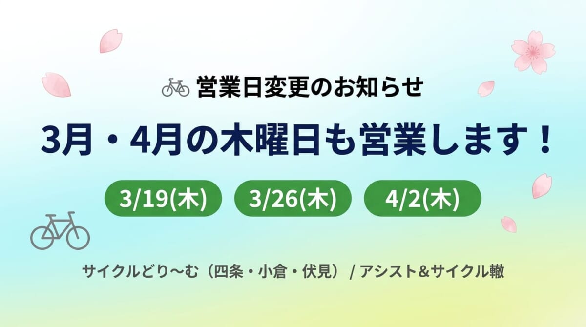 🚲 3月・4月 営業日変更のお知らせ