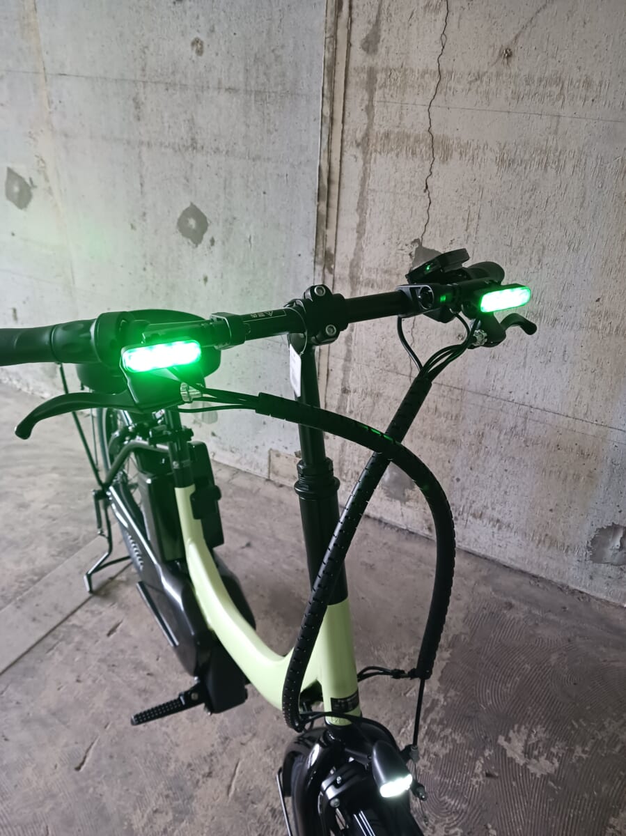 キックボード型が多い特定原付の中で、MUは自転車型のデザインを採用しています。